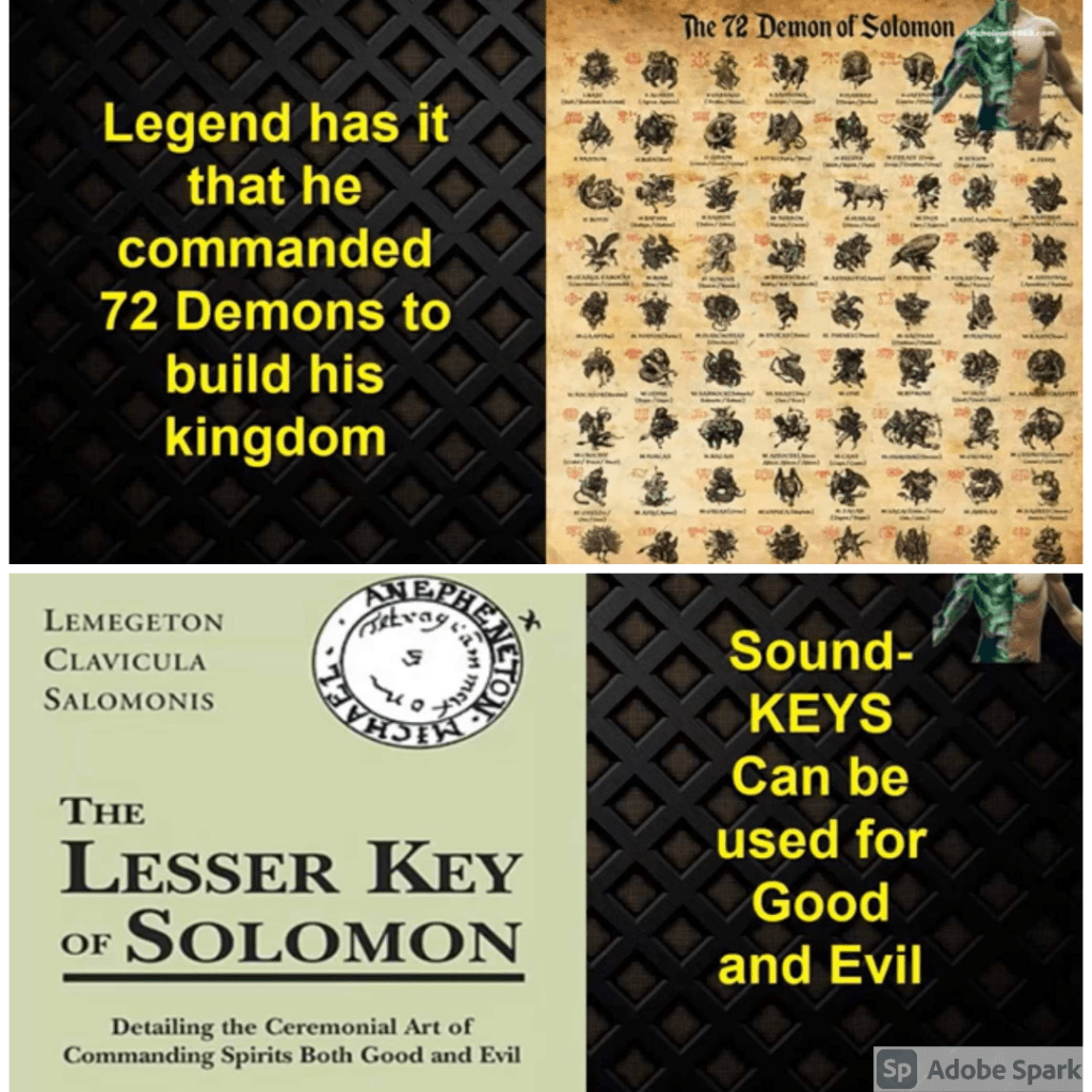 Human body is made up of an average of 72% WATER. Water has the power of sound waves vibration frequencies . Imagine what these high intensity frequencies can do with your body which is made up of 70% of water if they are used by evil hands? https://t.me/davidavocadowolfe/62217. The group of evil “secret societies” know the secret of sounds on “water-humans”. These groups used MUSIC to manipulate people. Sound keys can be used for good and evil. Even king Solomon understood how to use sound as in the building of the temple, many thought he commanded 72 demons to build his kingdoms as he welcomed the gods of his pagan wives. That’s why these secret societies hold him high regard and not the key of David in contradiction to God: