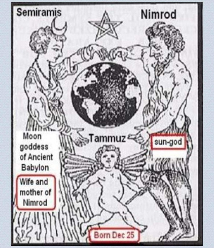 WHO WAS REALLY BORN ON DECEMBER 25? When NIMROD , the founder of Babylon, died, SEMIRAMIS his wife told the people that her husband’s spirit had taken possession of the Sun. She encouraged the people to pay homage to her husband by worshipping the Sun. Thus began the evil practice of sun worship and the popularity of turning the Sabbath worship into Sunday worship. Later on when Semiramis gave birth to a son by the name of, TAMMUZ she hid her licentious form of living by lying to the people. She told them that she was miraculously overshadowed by the spirit of her dead husband, Nimrod, and it was in this way she was able to bring forth this so-called “son of god.”