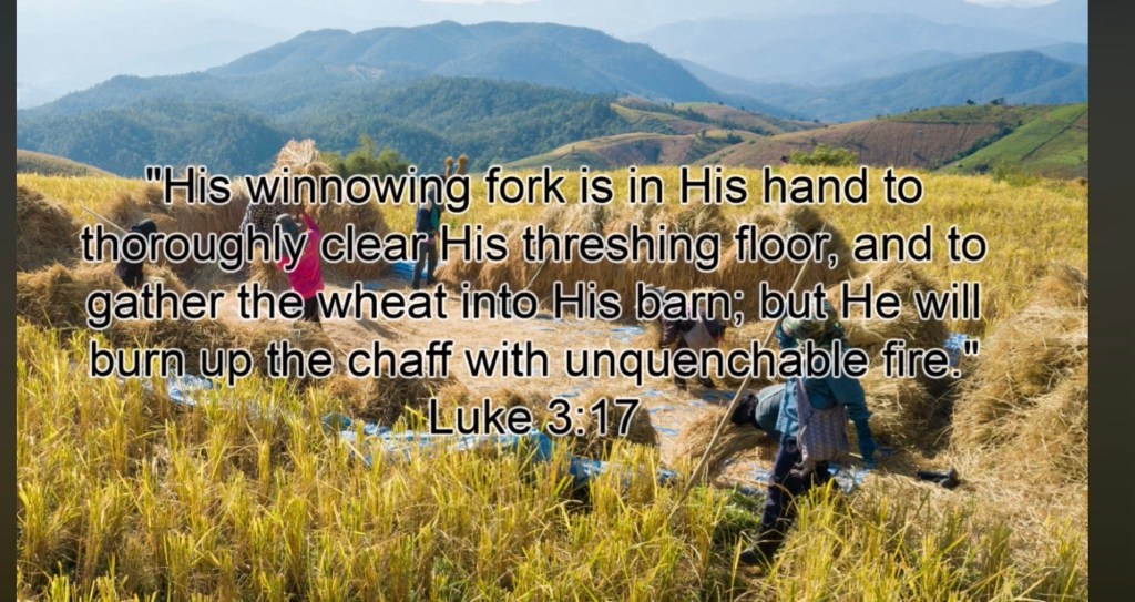 “and in the time of the harvest I will say to the reapers, Gather up first the tares, and bind them in bundles to burn them; but gather the wheat into my barn.” Matthew 13:24, 30 ASV