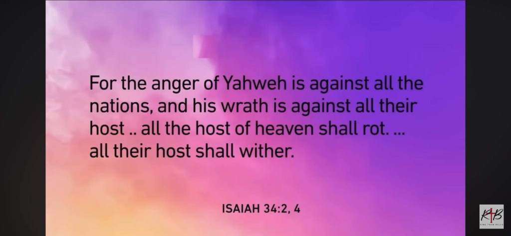 A rebellion that changed entire landscape of humanity. When was humanity divided into nations? At Babel. God allows the nations as a member of His divine councils. This is why ancient nations worship other gods. God decided to let the members of His divine councils to govern the other nations in response to humanity’s rebellion at Babel. But the gods of the nations failed to rule justly. Psalms 82:1-2. And God pronounced a judgement on them! Psalms 82:6-7. The gods will be judged, punished, will die! God was so angry with His corrupt heavenly sons the consummation of this punishment will come in the end times on the great day of the Lord. Isaiah 35:2,4.Isaiah 24:21. Abandonment and fragmentation of the people of God to Him and the rest of the nation.